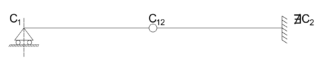 Considerando solamente il tratto a sinistra, le condizioni dei centri di rotazioni di entrambi i vincoli presenti non possono essere soddisfatte, dato che il carrello ammette come centro di rotazione un punto proprio o improprio lungo il proprio asse e la cerniera stessa è un centro di rotazione, quindi la struttura è isostatica.